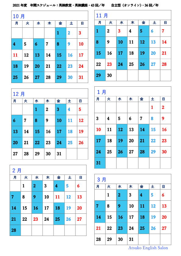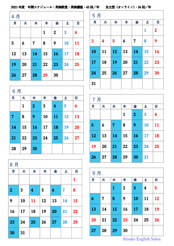 英検®教室・英検®講座・自宅教室:年間スケジュール